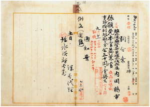 三八 塩水港庁警部兼塩水港庁属内田鶴市ハ麻拉里亜ニ罹リ職ニ堪ヘサル旨ヲ以テ辞職願ニ依リ本官並ニ兼官ヲ免シ事務格別勉励ニ付キ一時金ヲ賞与ス