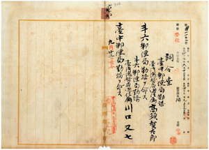 六六 台中郵便局長林定吉ノ内申ニ依リ台中郵便局勤務台湾総督府通信属高須賀太郎ニ斗六郵便局勤務ヲ命シ、斗六郵便局勤務台湾総督府通信属川口又七ニ台中郵便局勤務ヲ命ス