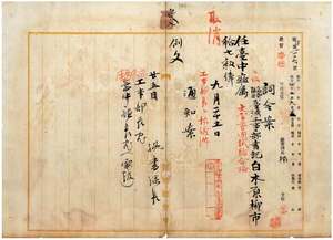 七八 台中庁長佐藤謙太郎ヨリ内申ノ臨時台湾工事部書記白木原柳市ヲ台中庁属ニ任用ノ儀取消ノ件