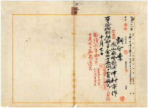 鳳山廳警部補中村市作賞與