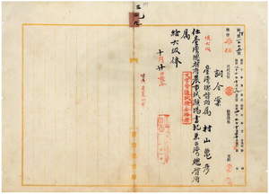 三九 台湾総督府農事試験場長代理小田代慶太郎及ヒ殖産局長代理福留喜之助ノ具申ニ依リ台湾総督府属村山亀彦ヲ台湾総督府農事試験場書記兼台湾総督府属ニ任ス