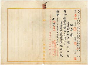 四四 官幣大社台湾神社禰宜磯田正敬ハ高齢ノ為メ勤務困難ニ付キ辞表ニ基キ台湾神社宮司山口透ノ内申ニ依リ台湾神社禰宜磯田正敬ヲ名誉禰宜トシ年報酬一五〇円ヲ給ス