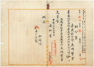 四六 嘉義庁長北原種忠及ヒ台南地方法院検察官長朽木義春ノ上申ニ依リ台南地方法院嘉義出張所検察局詰ノ台南地方法院検察局書記兼嘉義庁警部検察官代理台湾総督府法院書記尾崎繁男ニ台南地方法院嘉義出張所検察官代理並ニ兼官ヲ免ス