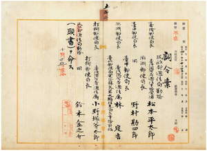五二 台湾総督府民政部通信局長持地六三郎ノ内申ニ依リ台湾民政部通信局勤務台湾総督府通信事務官補松本平太郎ニ基隆郵便局長ヲ命シ、澎湖郵便局長台湾総督府通信事務官補野村勘四郎ニ台中郵便局長ヲ命シ、台中郵便局長台湾総督府通信属林定吉ニ澎湖郵便局長ヲ命シ、台北郵便局電務課長兼大稲花支局長事務取扱台湾総督府通信属小野塚斧太郎ニ打狗郵便局長ヲ命シ、打狗郵便局長台湾総督府通信属鈴木金之介ニ民政部通信局勤務ヲ命ス