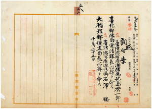 通信屬石澤騰大稻埕郵便局長心得ヲ命ス