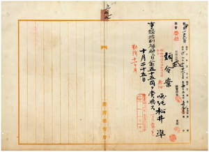 五九 台北郵便局長伊藤金弥ノ内申ニ依リ御用済解嘱ニ伴ヒ楊梅箇停車場郵便出張所勤務嘱託松井準ニ事務格別勉励ニ付キ一時金ヲ賞与ス