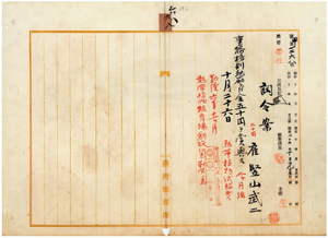 六八 台湾総督府民政部殖産局長代理福留喜之助ノ具申ニ依リ台湾総督府雇竪山武二ノ解雇ニ伴ヒ事務格別勉励ニ付キ一時金ヲ賞与ス