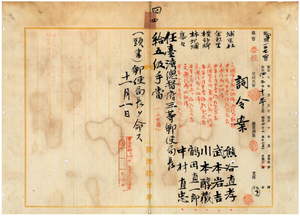 四 台湾総督府民政部通信局長持地六三郎ノ内申ニ依リ元台湾総督府属通信局勤務熊谷直孝ヲ台湾総督府三等郵便局長ニ任シ埔里社郵便局長ヲ命シ、元通信属武本岩吉ヲ台湾総督府三等郵便局長ニ任シ金包里郵便局長ヲ命シ、元総督府属兼通信属川本醇蔵ヲ台湾総督府三等郵便局長ニ任シ樸仔脚郵便局長ヲ命シ、元通信属鶴田直一郎ヲ台湾総督府三等郵便局長ニ任シ林砥埔郵便局長ヲ命シ、元通信属中村直忠ヲ台湾総督府三等郵便局長ニ任シ集集郵便局長ヲ命ス