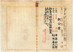 二二 台北監獄長典獄志豆機源太郎ノ内申ニ依リ看守中原卯八郎ト植田喜太郎ヲ台湾総督府監獄監吏ニ任シ台北監獄勤務ヲ命ス