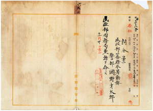 六〇 台湾総督府民政部内務局長川村竹治ノ内申ニ依リ民政部蕃務本署勤務台湾総督府警部岡野才太郎ニ民政部内務局兼務ヲ命ス
