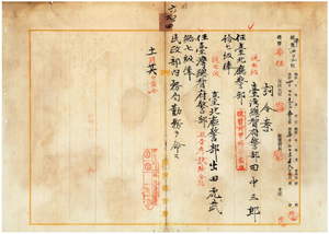 六四 台北庁長井村大吉及ヒ民政部内務局長川村竹治ノ内申ニ依リ台湾総督府警部田中三郎ヲ台北庁警部ニ任シ、台北庁警部出田虎武ヲ台湾総督府警部ニ任シ民政部内務局勤務ヲ命ス