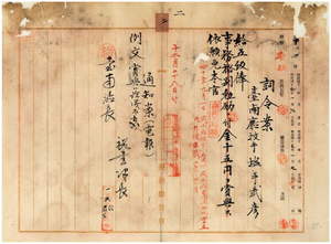二 台南庁技手塩手武彦ヨリ麻刺里亜ニ罹リ職ニ堪ヘサル旨ヲ以テ辞職願ニ依リ昇級ノ上本官ヲ免ス
