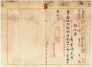 一〇 台湾総督府民政部通信局長持地六三郎ノ内申ニ依リ雇宮崎久吉ヲ御用済解職ノ為メ事務格別勉励ニ付キ一時金ヲ賞与ス