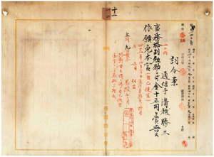一二 実母病気看護ノ為メ帰省中ノ台中郵便局勤務台湾総督府通信手溝越勝三ハ疾病ニ罹リ退官願ニ依リ本官ヲ免シ事務格別勉励ニ付キ一時金ヲ賞与ス