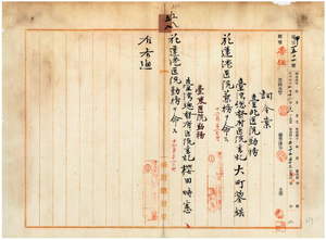 五八 台湾総督府民政部内務局長川村竹治ノ内申ニ依リ台北医院勤務台湾総督府医院書記大町潺澀ニ花蓮港医院兼務ヲ命シ、台東医院勤務台湾総督府医院書記桜田時憲ニ花蓮港医院勤務ヲ命ス