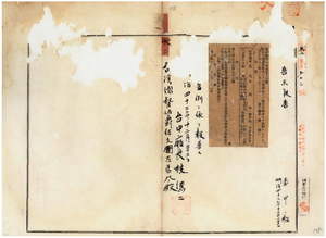 六〇 第一五六号 台北庁大加蚋堡大稲花平和街林曠ハ清国厦門ニ於テ外国旅券遺失ノ旨台北庁長ヨリ通知ノ件