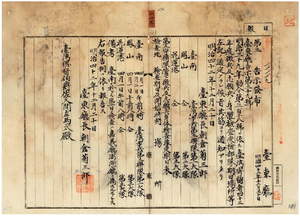 一一三 第三九号 明治三九年勅令第三一八号ニ依ル台湾寄留者明治四三年度徴兵及志願兵ノ身体検査受検部隊及ヒ期日場所ニ付キ通知ノ件