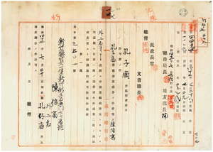 一四 新竹庁竹北一堡新竹街ノ孔子廟ノ敷地ノ一部ヲ新竹公学校新築敷地ニ組入レルコトトナリタルタメ腐朽甚シキ同廟所属ノ孝友祠(但シ節孝祠ヲ同祀)・名宦祠(但シ昭忠祠ヲ同祀)・郷賢祠・明倫堂・文昌祠ヲ取毀シ其ノ古材料ヲ孔子廟大成殿崇聖祠ノ修繕用ニ供シ不用トナリタル分ハ売却シテ同廟ノ基本財産ニ編入スルトノ同廟管理人陳信斉ト信徒総代鄭如蘭・李文樵ヨリノ願ニ対シ許可ノ件