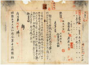一五 明治四二年七月一〇日勅令第一八二号官国幣社及神部署神職任用令改正ニ伴ヒ明治三七年二月府令第一二号県社以下神社神職任用規則中改正ノ件(府令第七〇号)
