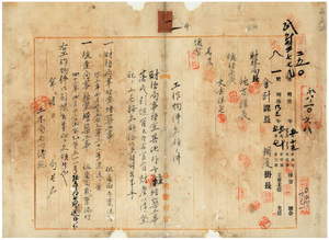 一 台湾総督府民政部財務局事務室増築工事・殖産局事務室増築工事落成引継ニ付キ財務局長ヨリ土木局長心得ヘ工作物件受領証交付ノ件