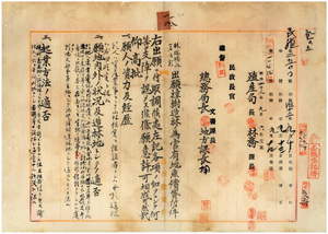 一八 樟樹造林ノ為メ台中庁猫羅堡阿罩霧庄土名阿罩霧ノ林端騰ト林季商ヨリ出願ノ台中庁藍興堡車籠埔庄及ヒ同堡番仔リョ庄並ニ同堡阿罩霧庄ノ官有原野無償貸付ニ付キ許可ノ件