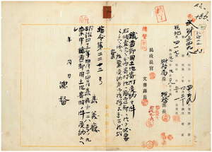 八 嘉義庁長北原種忠ヨリ稟申ノ台湾総督府鉄道部増用地敷地トシテ同庁嘉義西堡嘉義街ノ林寛裕所有ノ土地寄附受納願認可ノ件(指令第二二一三号)