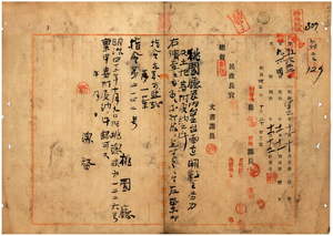 一 桃園庁長西美波ヨリ稟申ノ台北台南道ヲ横断セル二重渓両岸ノ道路変更開鑿用トシテ陳阿裕・陳石・陳阿鼎ヨリ同庁竹北二堡大金山下庄土名大金山下ノ土地ヲ竹北二堡二重渓庄総代黄徳康外一七四人・同堡頭重渓庄総代黄発兼外二三九人八分・同堡草囚坂庄総代張玉興外二六二人・同堡楊梅箇庄総代黄樹霖外三二六人・同堡老坑庄総代彭阿和外一八七人・同堡水尾庄総代鄭徳愛外二一三人・同堡秀才窩庄総代鄭来桂外二九四人ヨリ労力ヲ寄附受納ニ付キ認可ノ件(指令第五一四二号)