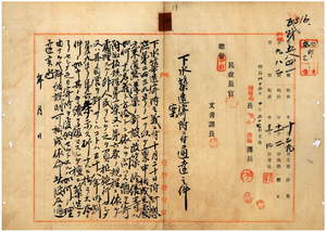 二 阿緱庁佐々木基ヨリ稟申ノ同庁港西中里麟洛庄麟洛ノ徐慶昌・徐祥生・范浩臣・徐蔭棠・葉潤軒・徐慶垣・郭捷連ヨリ公共用下水築造寄附願ニ付キ当該官吏不注意ニヨリ更迭ノ上寄附受納認可ノ件(指令第六四二八号)