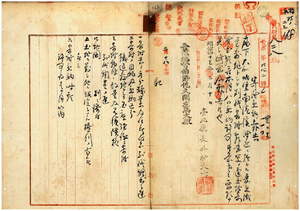 八 台北庁井村大吉ヨリ稟申ノ苗栗庁大加蚋堡南港三重埔庄ノ土地ヲ鉄道敷地トシテ杜陶生・杜水木・杜信・杜沈氏雅・杜隆・杜来旺・廖番・陳春桃・陳得路・陳同・王和尚・関闕妙・鄭彦棕・鄭彦相・鄭士洛・鄭士渓・王福泗・王福淇ヨリノ寄附受納報告ノ件