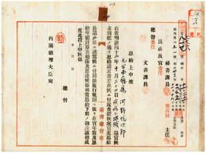 二九 明治四二年一〇月二四日付ヲ以テ疾病ニ罹リ職ニ堪ヘサル旨ヲ以テ退官セル元台南庁属河野悦次郎ヘ恩給証書下付ノ件[二七を見よ]