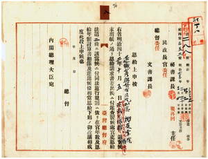 櫻庭棠陰恩給證書送付ノ件(青森縣)