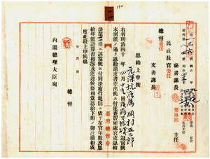 岡村正三郎恩給證書送付ノ件(嘉義廳)