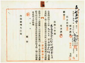 一六 麻刺里亜ニ罹リ退官ノ元蕃薯リョ庁警部池端要之進ヘ恩給証書下付ノ件