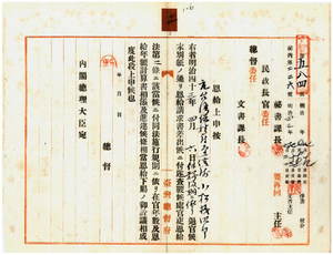 一一 元台北郵便局勤務台湾総督府通信属小松茂次郎へ恩給証書下付ノ件