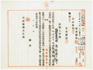 五 元新竹庁警部角居謙太郎ヘ恩給証書下付ノ件