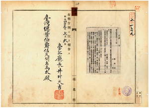 五〇 第三二号 明治四三年一月台北庁訓令第三号台北庁警察報告例別冊中改正ノ件