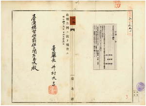 一二 第五四号 明治四三年七月台北庁訓令第三三号支庁長委任事項中基隆支庁委任事項追加ノ件(1910-12-27~1911-01-16);台北庁・宜蘭庁・桃園庁ノ訓令供閲ノ件(1911-01-09~1911-01-16)