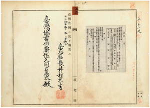 五五 第四〇号 台北庁管内大加蚋堡崔崢大衆廟口街張釈衍ハ煙草営業鑑札遺失ニ付キ該鑑札ヲ無効トス