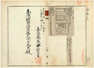 六五 第五〇号 台北庁管下枋橋区後埔庄杜佃枝・社仔区社仔庄陳紅・崔崢区八甲庄山本ユウ・同区西門外街林徳次郎・同区府前街井ノ口儀助・同区大厝口街鄒錦春・同区大厝口街黄楊忠ノ行商鑑札紛失及ヒ行衛不明ニ付キ該鑑札ヲ無効トス