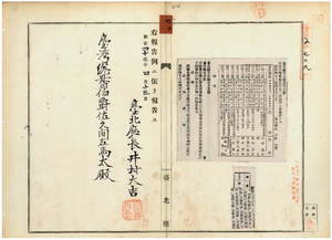 七〇 第五五号 台北庁管内ノ大加蚋堡台北城内府中街ノ川合良男・東城吉彦・長谷川熊吉・村井房吉・三杉九万次、大加蚋堡台北城内府後街石井秀八、大加蚋堡大稲花港辺街三井物産株式会社台北支店長斉藤吉十郎、大加蚋堡大稲花六館街黄栄位ハ自転車鑑札亡失ニ付キ該鑑札ヲ無効トス(1910-04-13~1910-05-02);台北庁・宜蘭庁・新竹庁・台中庁・台南庁・澎湖庁ノ告示供閲ノ件(1910-04-15~1910-05-02)
