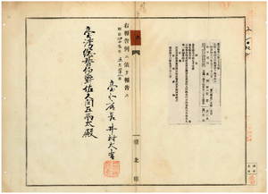 九 第七五号 台北庁芝蘭一堡士林街施廷俊ニ収入印紙売捌許可ノ件(1910-05-22~1910-07-15);台北庁・新竹庁・台中庁・南投庁・嘉義庁・台南庁・阿緱庁ノ告示供閲ノ件(1910-07-28~1910-07-15)