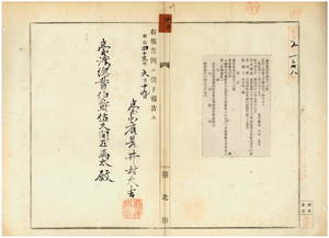 二〇 第八六号 台北庁大加蚋堡台北城内西門街今井周三郎ニ収入印紙売捌許可ノ件