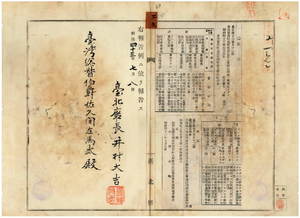 臺北廳告示第九十二號蕃務官吏駐在所名稱位置及管轄區域ヲ定ムル件