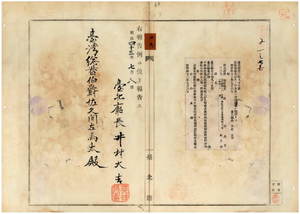 二九 第九五号 台北庁芝蘭一堡社仔庄土名後港茄紀士興所有ノ支那形船ノ船鑑札紛失ニ付キ該鑑札ヲ無効トス