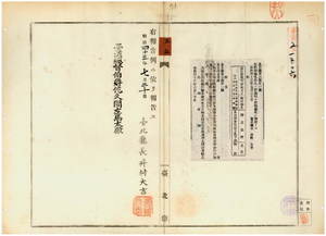 三五 第一〇一号 台北庁文山堡安坑庄林桙所有ノ支那形船合順号ノ船鑑札紛失ニ付キ該鑑札ヲ無効トス