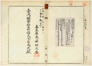 七六 第一四二号 台北庁大加蚋堡大龍斤街陳金徳所有ノ支那形金合発ノ船鑑札遺失ニ付キ該鑑札ヲ無効トス
