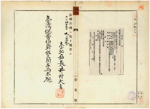 八八 第一五四号 台北庁文山堡大坪林庄游世清ノ収入印紙売捌許可ノ件