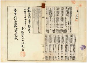 一一〇 第一七六号 台北庁直轄ノ周賜・高最・唐最九・王士糖・孫官就・王渓泉・張鼎足・陳曰・洪池・黄登雲、士林支庁管内ノ郭加忠、新庄支庁管内ノ劉水・黄杏、枋橋支庁管内ノ陳庚・楊水閣・蔡氏夜好・郭花禄、滬尾支庁管内ノ張永来・洪火・張金皷、基隆支庁管内ノ許用・方恩、頂双渓支庁管内ノ林乾順、瑞芳支庁管内ノ杜細、金包里支庁管内ノ許発、水返脚支庁管内ノ蔡和尚・凌雨、新店支庁管内ノ周蔭・呉江ハ阿片烟膏購買吸食特許鑑札亡失ニ付キ該鑑札ヲ無効トス