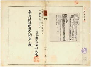 一一三 第一七九号 明治三九年七月台北庁令第一五号種牡豚取締規則第一一条ニ依リ証明書ヲ下付シタル台北庁興直堡新庄陳徳所有ノ種牡豚斃死ノ件