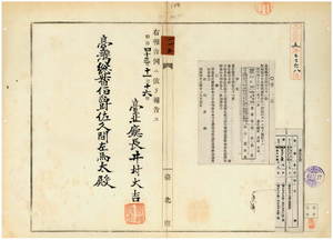 一一五 第一八一号 台北庁大加蚋堡大稲花大平街顔水田ハ煙草小売営業鑑札紛失ニ付キ該鑑札ヲ無効トス